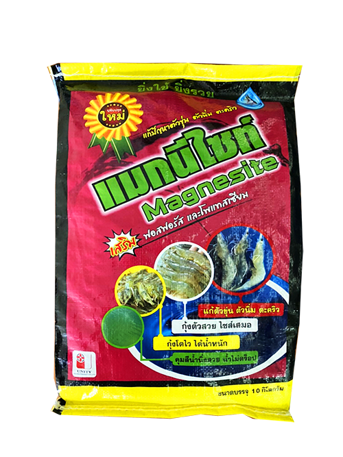 แร่ธาตุหลักและแร่ธาตุรอง แก้ไขปัญหาการขาดแร่ธาตุในการเลี้ยงกุ้ง ชดเชยแร่ธาตุที่สูญหายระหว่างเลี้ยง เพิ่มแร่ธาตุในบ่อที่มีปัญหาดินกรด ดินเปรี้ยว pH ต่ำ มีสนิมเหล็ก กำมะถันและอลูมิเนียม ปรับสมดุลแร่ธาตุ เพิ่มแร่ธาตุในบ่อเลี้ยงกุ้งที่เลี้ยงติดต่อกันมาเป็นเวลายาวนาน ลดอาการตัวนิ่มตัวขาวขุ่นเป็นตะคริว